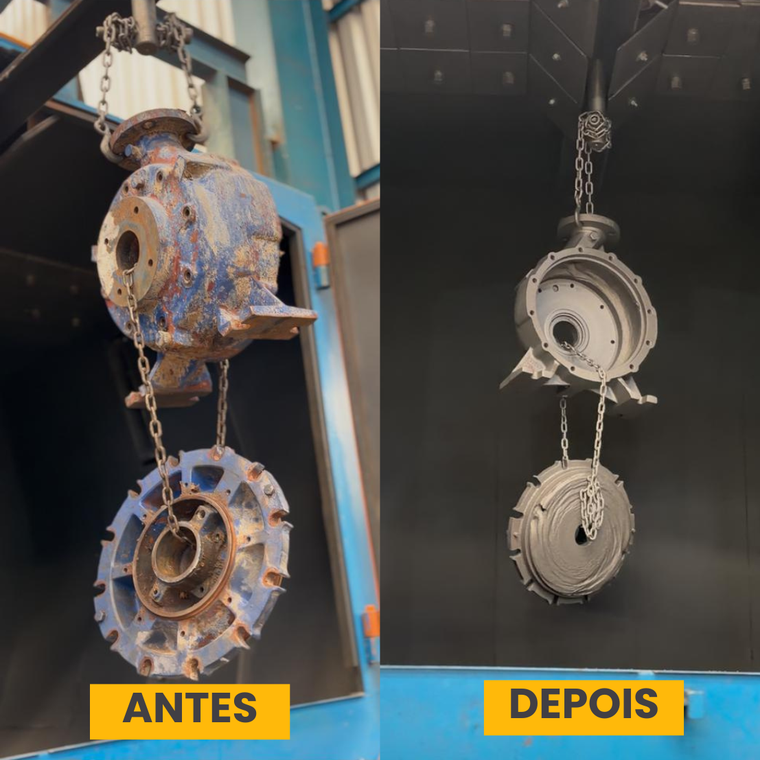 Nosso processo é ideal para empresas que buscam acabamento uniforme, melhor aderência de pintura e aumento da vida útil das peças, sendo indicado para o tratamento de carcaças de bombas industriais, redutores, motores elétricos, exaustores industriais e componentes metálicos de pequeno e médio porte.